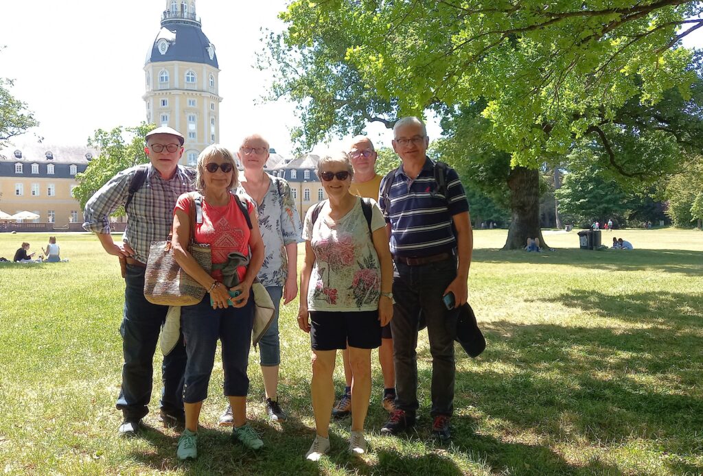 Für das obligatorische Picknick konnte im Schlosspark schnell ein schattiges Plätzchen gefunden werden und bald ging es auch schon weiter zur nächsten Station, dem Zoo bzw. Stadtgarten, einem Resultat der Bundesgartenschau 1967. Für unsere Gäste eine nette Erinnerung an ihren Aufenthalt zum 50jährigen Jubiläum, als wir mit ihnen die Bundesgartenschau in Mannheim besuchten. Unterwegs lieferte uns unser Mitglied, die Kunsthistorikerin Dr. Christiane Kothe, auf Deutsch und Französisch versiert weitere Informationen zur Karlsruher Stadt- und Baugeschichte. Der Abend gehörte – wie der Vorabend auch – den Familien und konnte gut bis spät in die Nacht andauern.