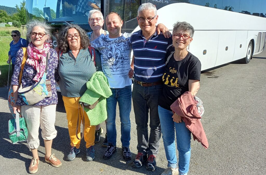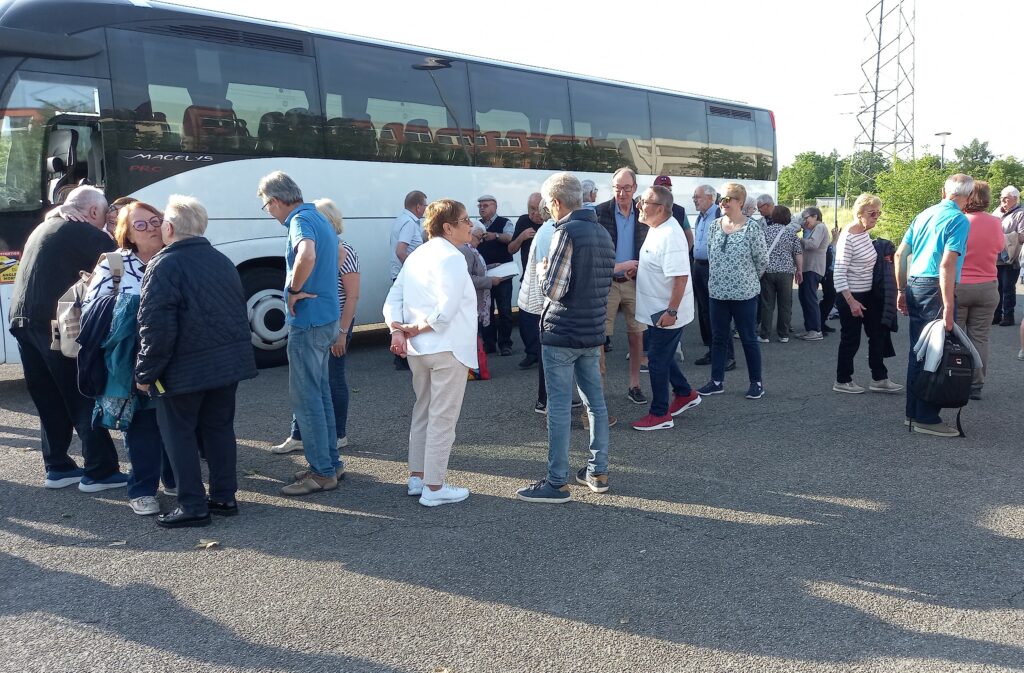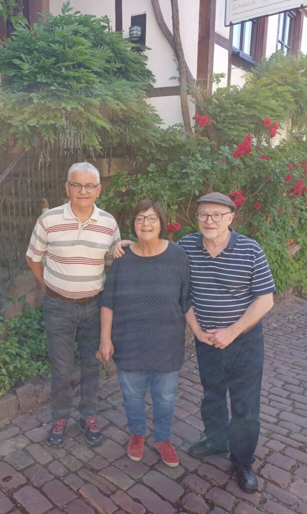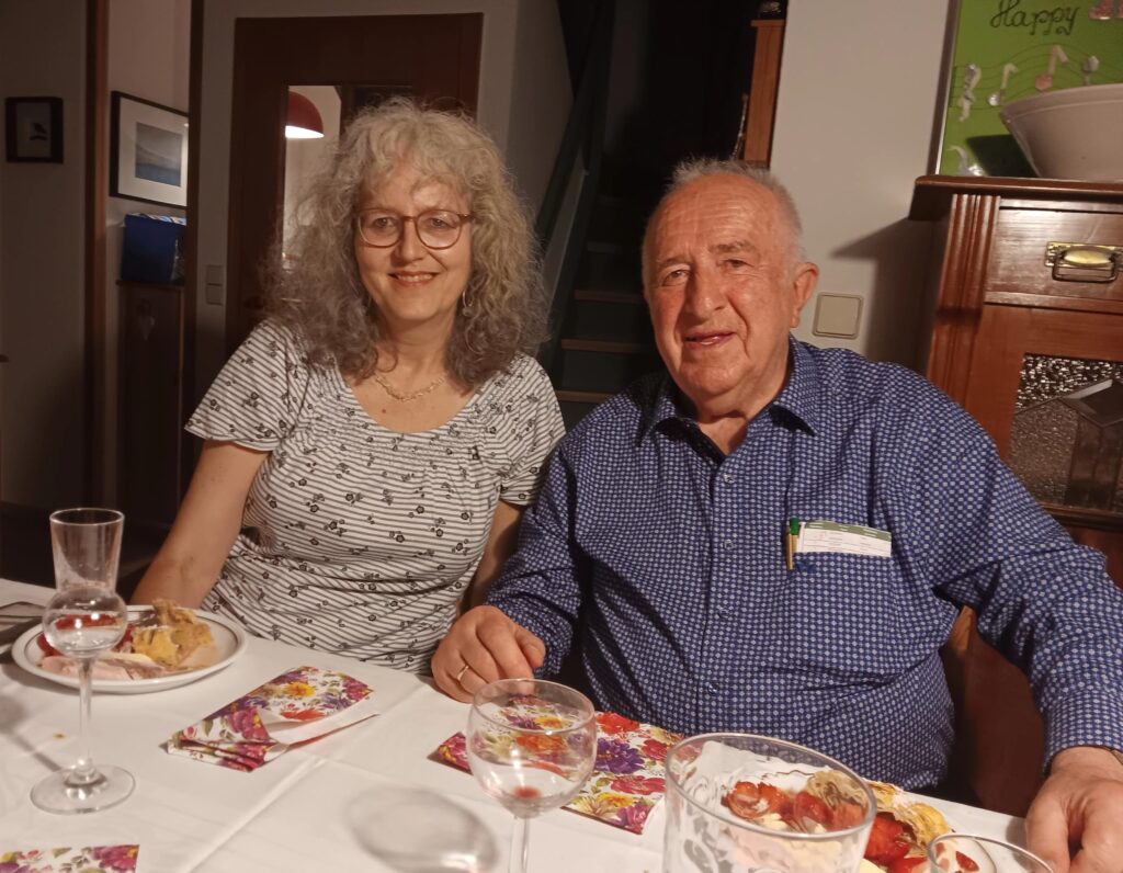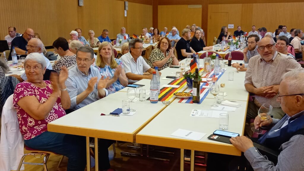 Punkt 18 Uhr traf der Bus mit den Franzosen am Donnerstag Abend auf dem Parkplatz vor der Geschwister-Scholl-Schule ein. Was dann folgte, war jahrzehntelange „Willkommensroutine“ Küsschen links, Küsschen rechts, „ça va?“ („Wie geht’s?“), „ça va!“ („Geht gut!“), waren freundschaftliche Umarmungen und viele altbekannte Gesichter. Aber umso erfreulicher: Unter den knapp 50 Gästen sah man auch etliche jugendliche Gesichter sowie Gäste und Gastgeber, die zum ersten Mal dabei waren. Und ebenfalls sehr erfreulich: Sowohl der deutsche Partnerschaftspräsident Ernst-Robert Schöpe als auch seine französische Kollegin Co-Präsidentin Monique Bechariat hielten sich mit ihren Begrüßungs- und Dankesreden erstaunlich kurz nach dem Motto: Wichtiger alles Reden ist das gemeinsame Erleben – und davon gab es in den nächsten zwei Tagen reichlich.