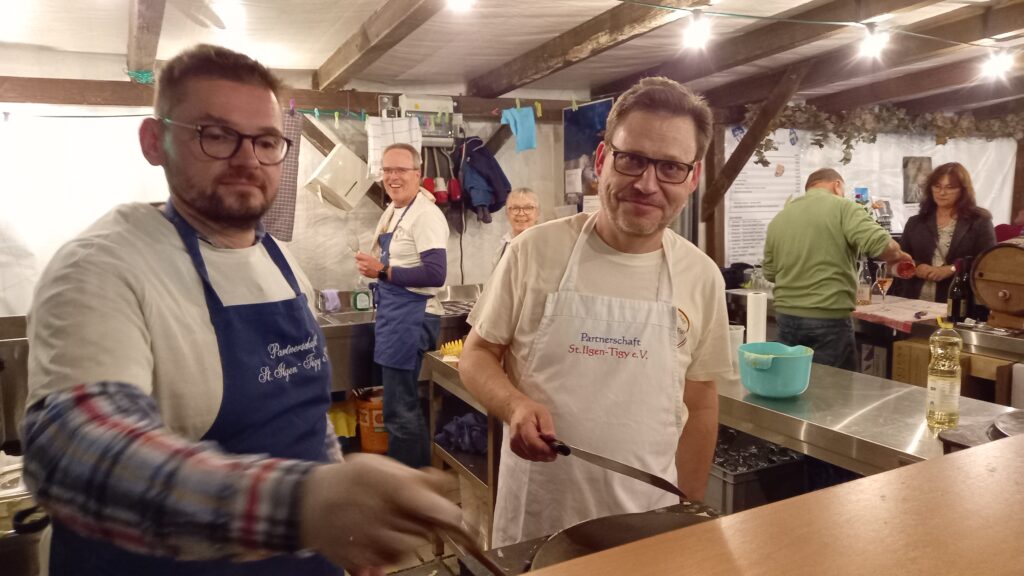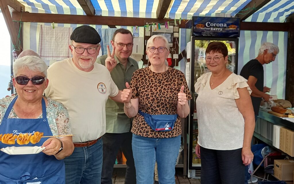 Die Wagen unserer Partner aus Tigy waren voll von Spezialitäten ihrer Heimatregion, dem Loiretal: Honig aus der Sologne, Linsenchips, Entenpastete, Kuchen von dem berühmten Schloss Chambord. Zum ersten Mal waren sie damit auf der Leimener Weinkerwe vertreten und schon am ersten Tag waren die Bestände so stark reduziert, dass der beliebte trockene Roséwein von einem hiesigen Lieferanten nachgeliefert werden musste. Ein voller Erfolg also auf ganzer Linie, zu dem auch die Mitglieder der hiesigen Partnerschaft einen wesentlichen Beitrag leisteten. Und das gerade mal eine Woche nach dem Großeinsatz bei der St. Ilgener Kerwe. Von Seiten des Vorstands daher ein ganz herzliches Dankeschön allen Helferinnen und Helfern beider Kerwestände!!